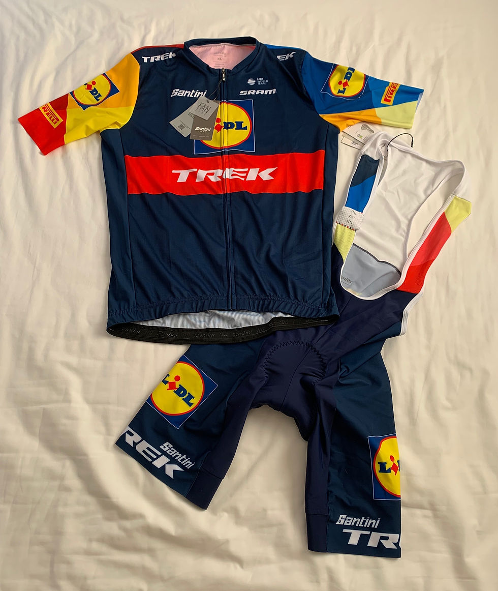 Just the other day I received a very cool package from the Wisconsin-based tour company, which is part of the better-known bicycle manufacturer. Its contents, which I mentioned in a previous posting would be coming, included my Trek Travel cycling jersey and my Lidl-Trek pro team jersey and bib shorts. These articles of clothing will enable me and other participants to ride in style and comfort during our five days amid the Flanders countryside.
